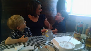 And that same day, we met Heather and Samuel at the Farmer's Market for lunch at the Moose. Samuel and Jojo always have so much fun together, but poor Heather got the responsibility of entertaining both boys while I took care of Lizzie. The boys certainly looked like they were enjoying themselves! We love these sweet friends!